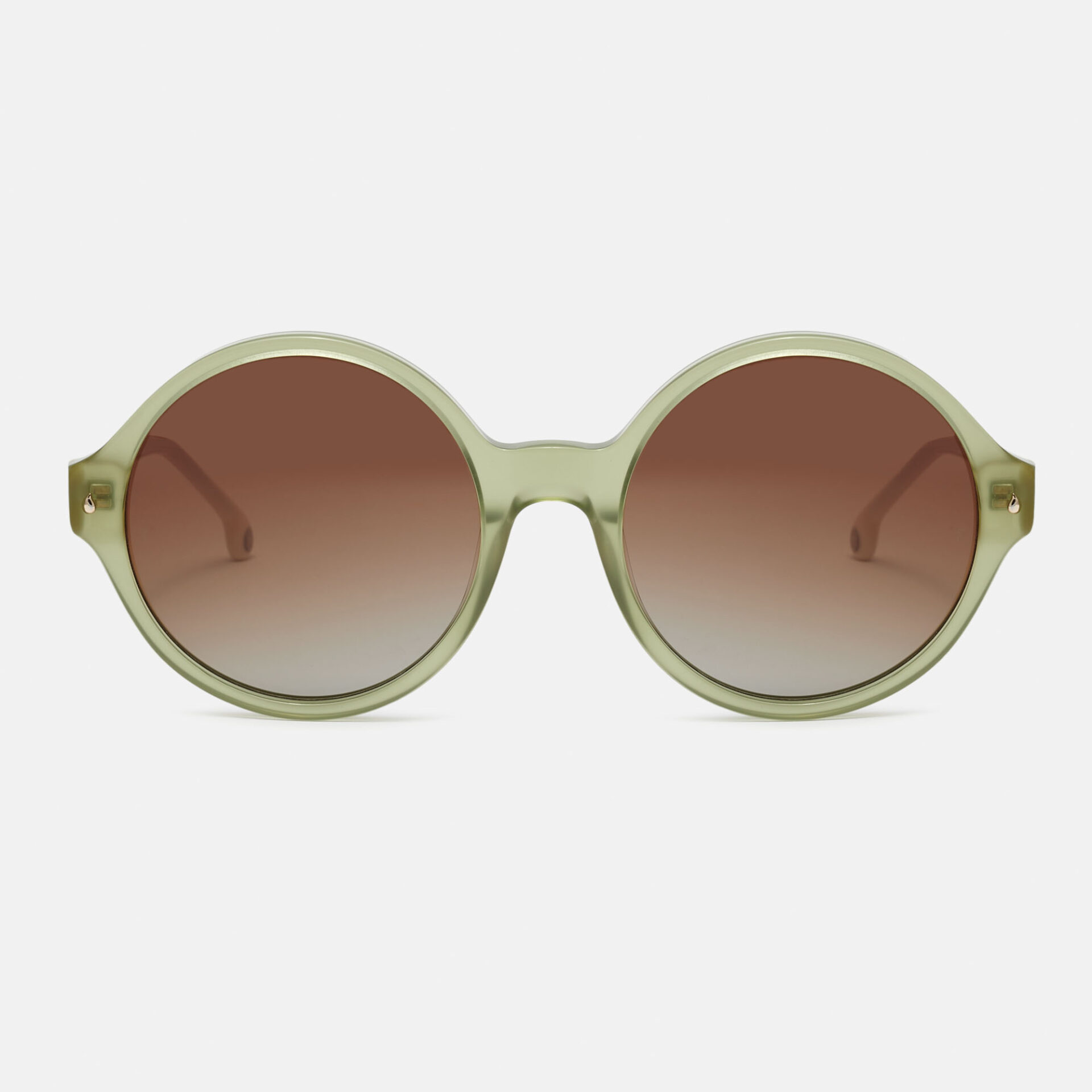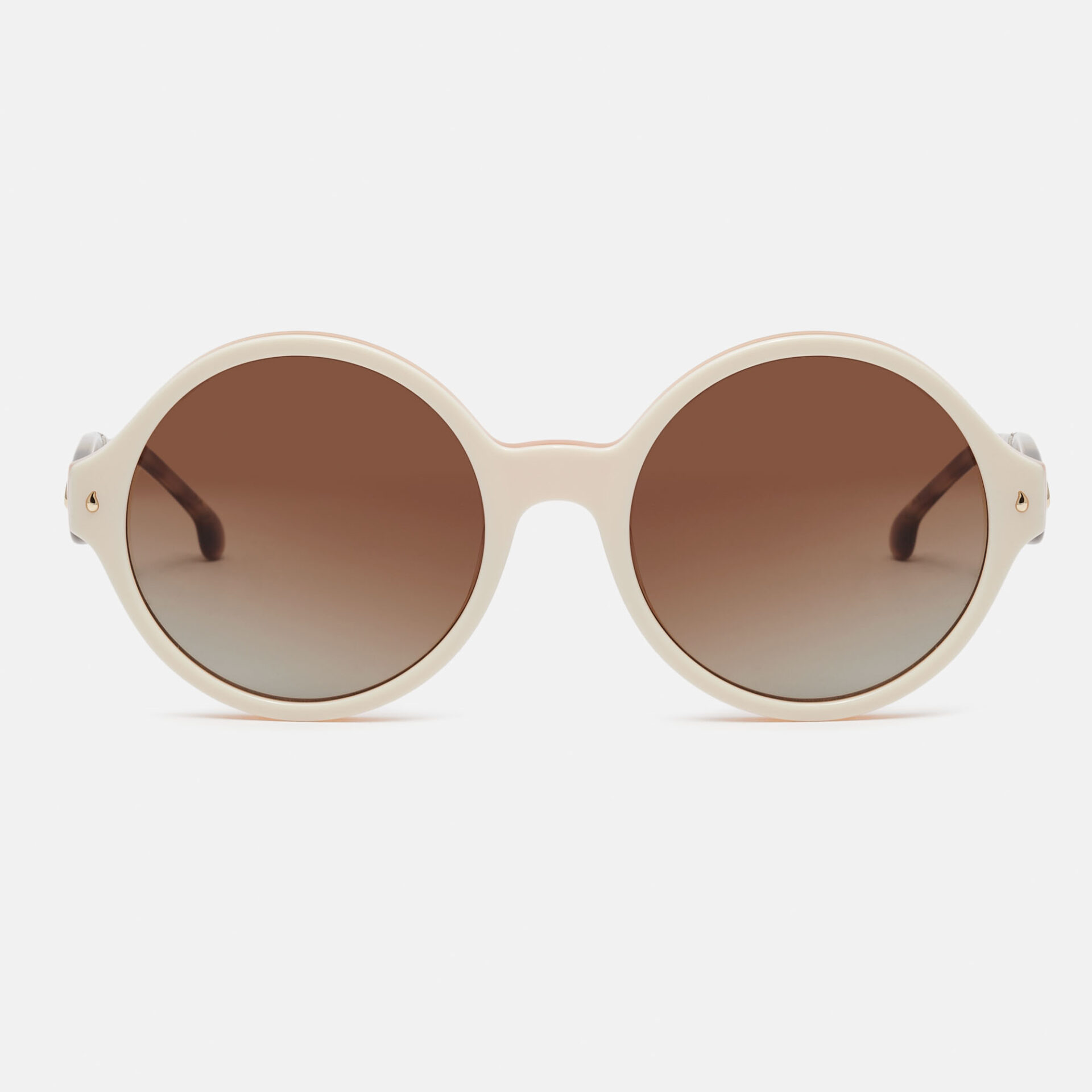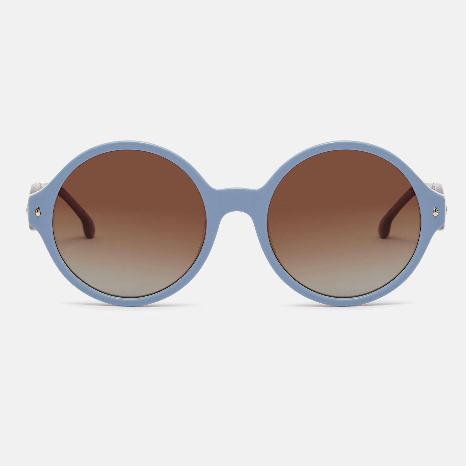 Gafas de sol para mujer, de nuestro concepto TAJ, inspirada en la esencia vibrante dela India. Este modelo presenta una silueta redonda producida en acetato. Losdetalles en frente y varillas recuerdan a las formas del bindi tradicional de Asiaaportando elegancia y sofisticación a este modelo. Incluye lentes de sol polarizadas.